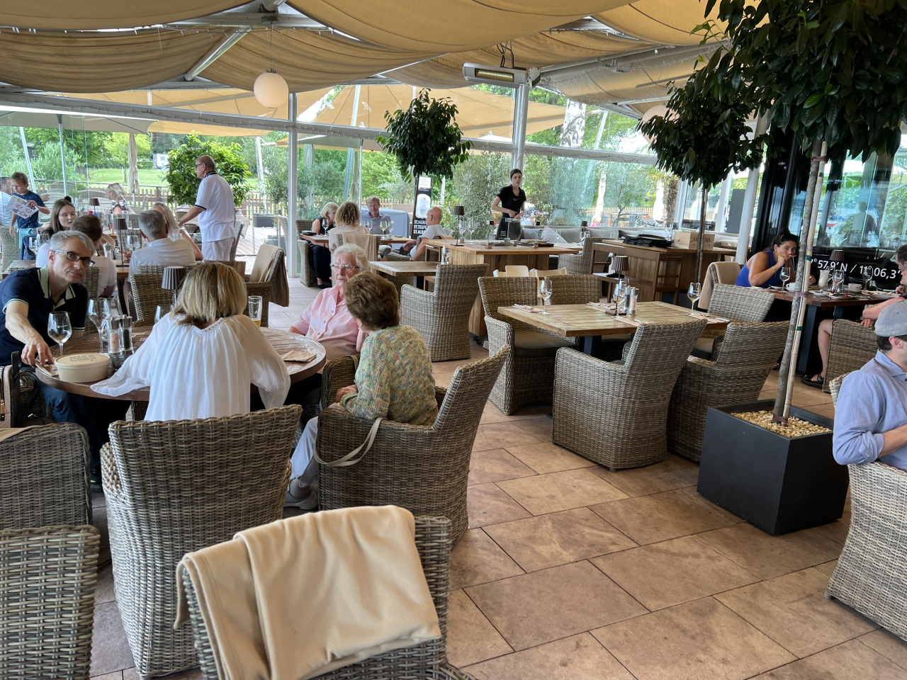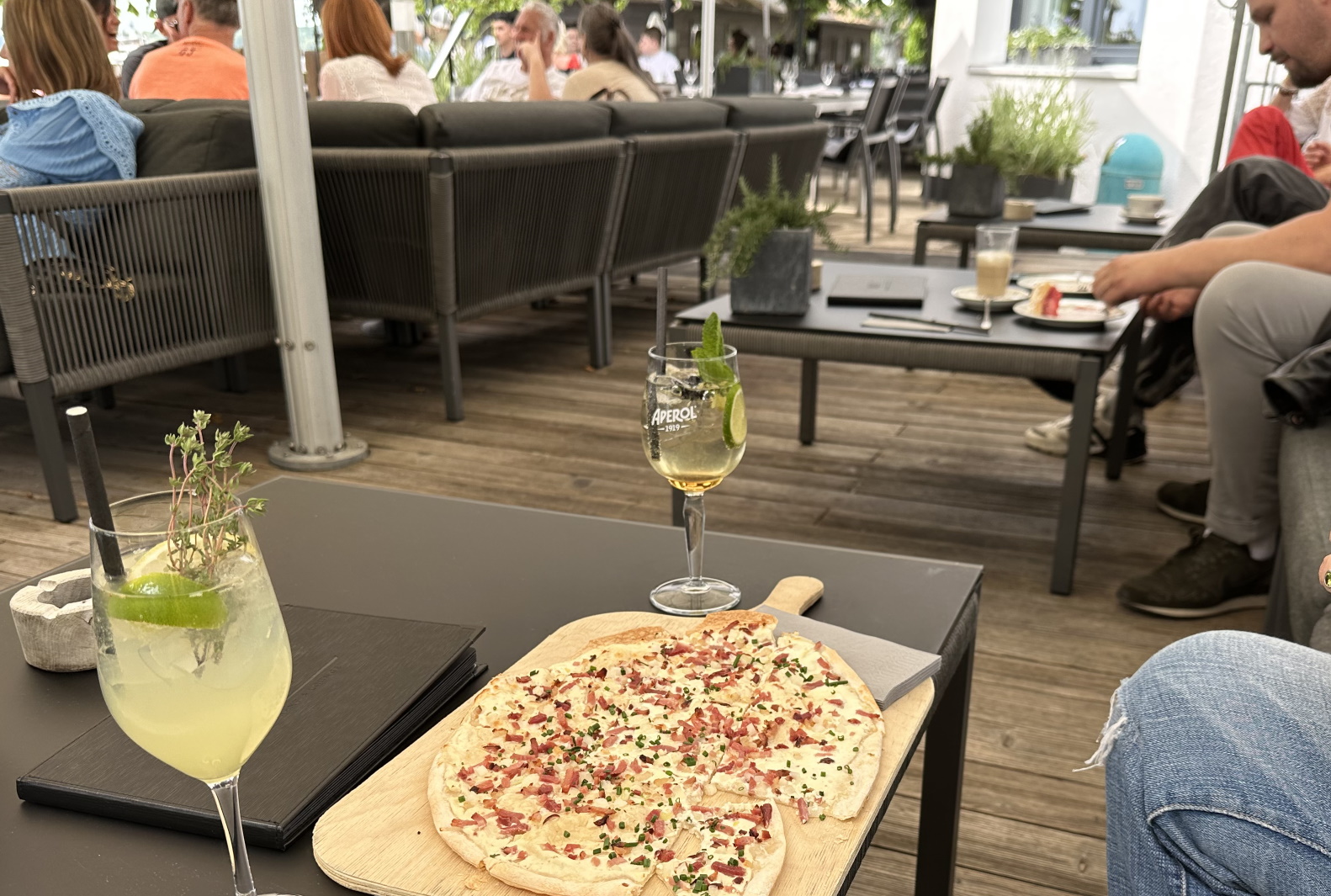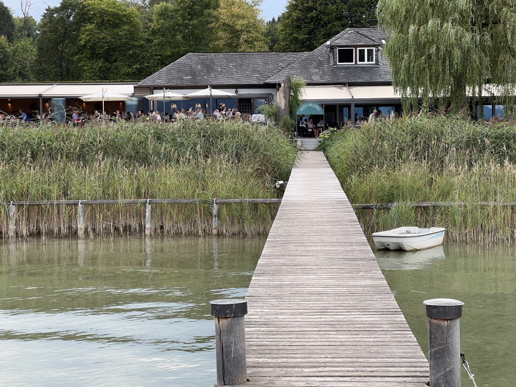 Gabrielle Thyssen ist Inhaberin des Hotels und betreibt es mit großen Engagement. Es gehört mit zu den schicksten und besten Hotels am See (wahrscheinlich ist es sogar das Beste). Mit dem Anspruch bewegt es sich auch in der entsprechenden Preisklasse. Wir haben perfekten Flammkuchen gegessen mit einem Cocktail.