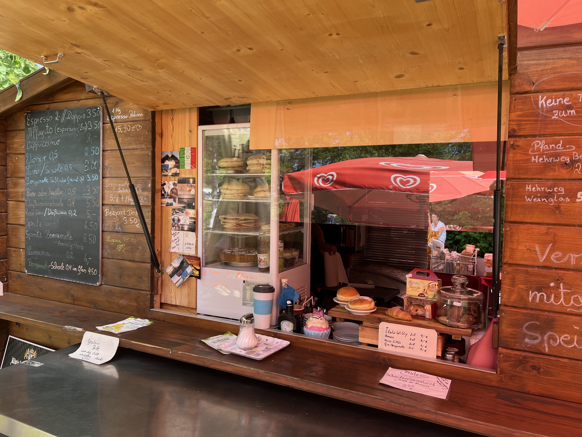 Der Kiosk öffnet mit der Saison (2023 Ende Mai) und hat bis September offen. Öffnungszeiten 11:00-21:00.
