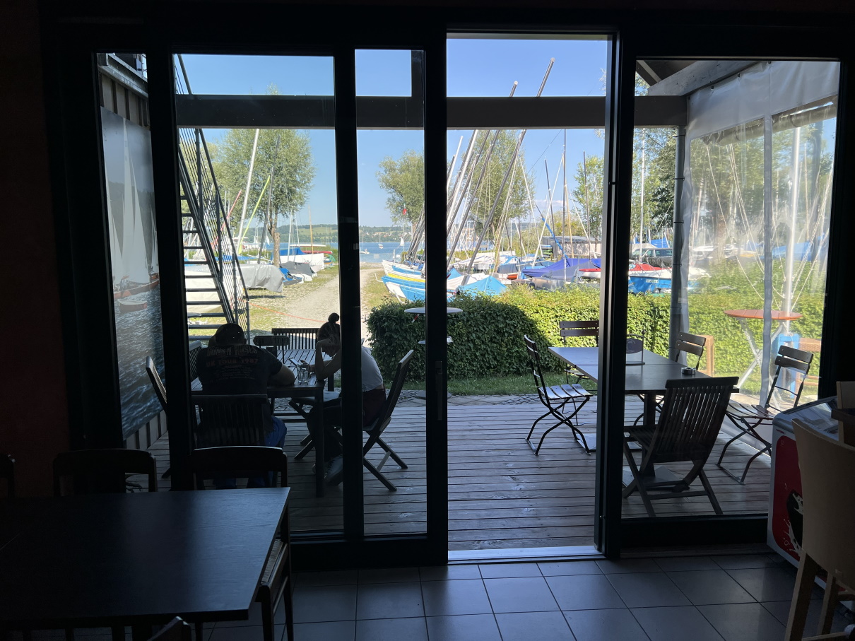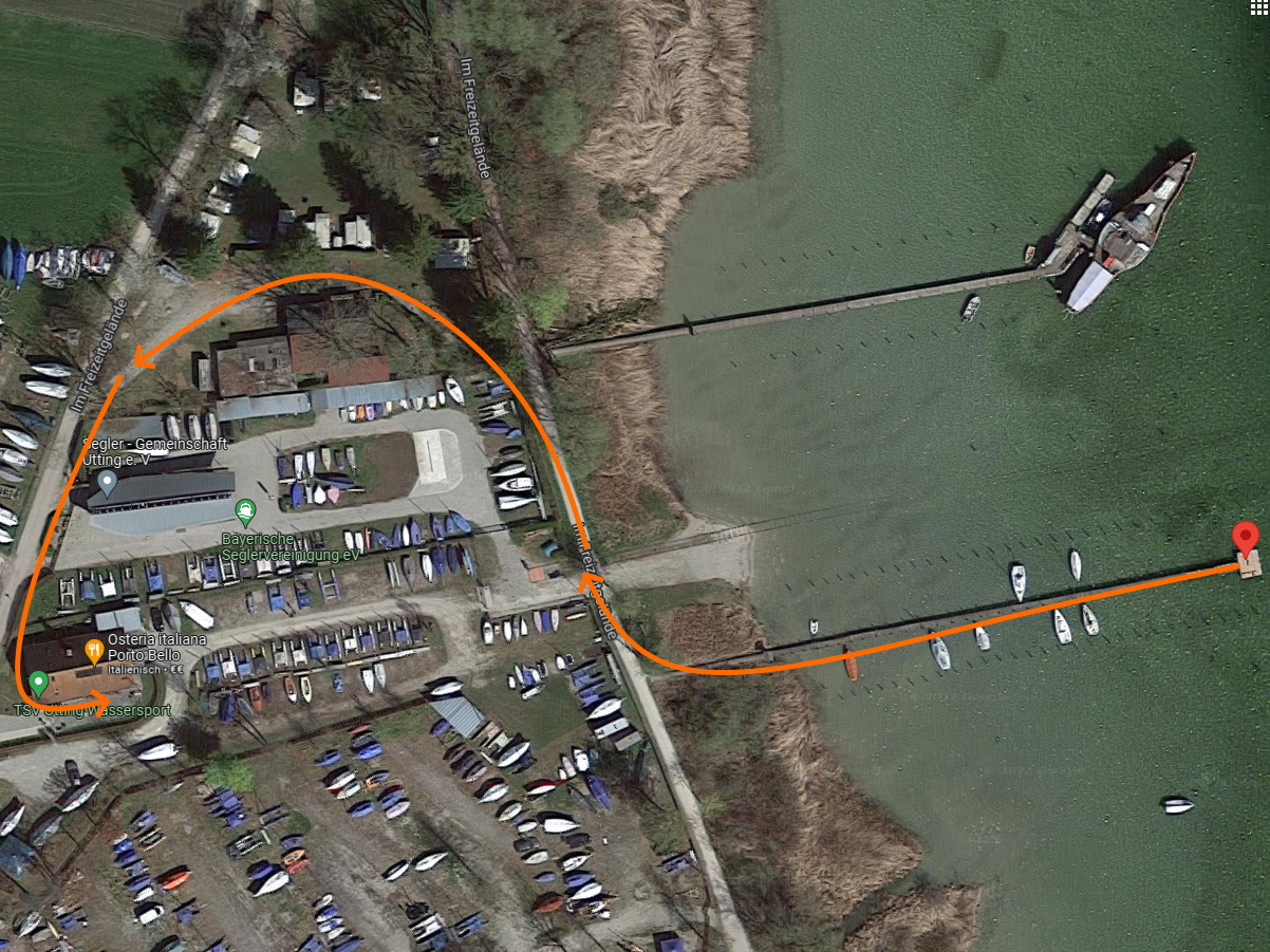 Das Portobello würde ich eher als Geheimtip verstehen. Das Freizeitgelände in Utting ist kein Platz der Ruhe, daher sind die Nerven etwas angespannt. Der Steg selbst gehört zum SGU und ist eher weniger für Gäste vorgesehen. Mehr als zwei haben an der Plattform auch nicht Platz. Ich denke, wenn wenig los ist und man mit den Leuten am Steg spricht, kann man zum Essen festmachen. Wenn man diese Hürde genommen hat, ist der direkte Weg über einen Segelclub durch gut bewachte Tore versperrt. Man geht außenrum über den Zeltplatz "Hexe" vorbei zum Protobello. Dauert 5 min.