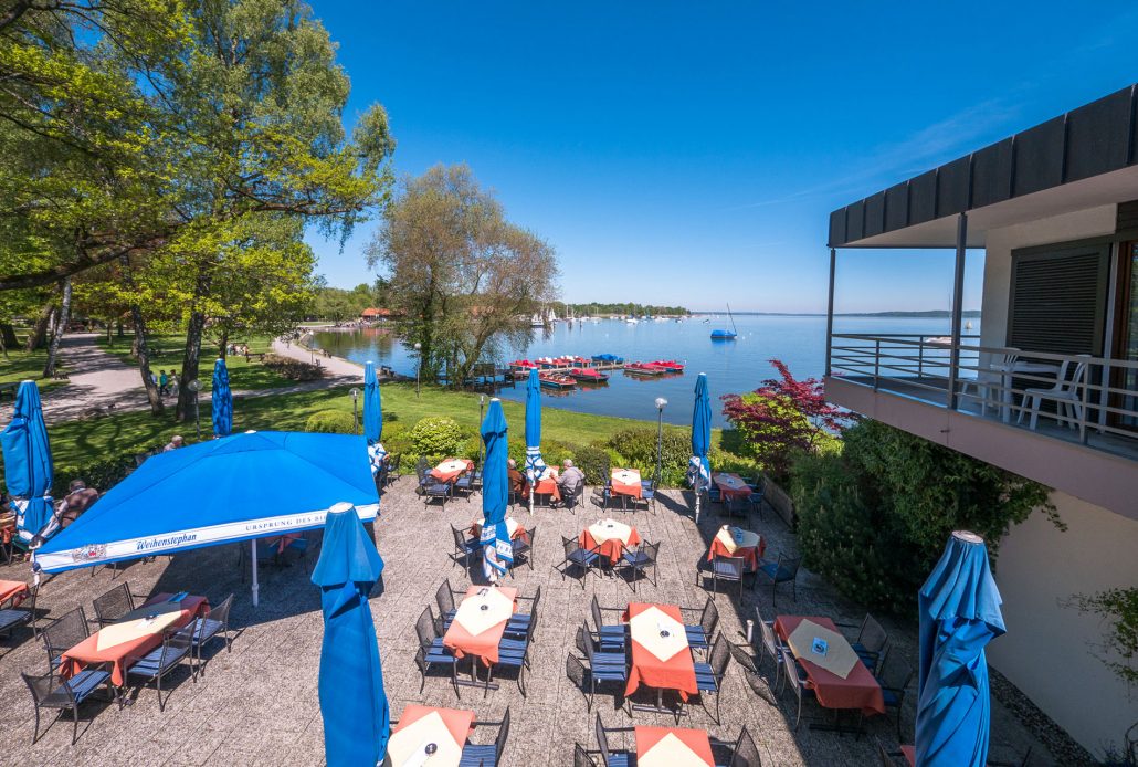 Das Strandhotel:Südsee ist in Dießen direkt am Ufer. Im Strandhotel kann man gut essen und es hat geöffnet (Stand Sept 2022) Do/Fr ab 18:00, Sa ab 14:00 und So ab 12:00. Besonders die Terrasse bietet einen großartigen Blick auf den See. Neben dem Hotel ist ein Strandbad, das mit Eintritt öffentlich zugänglich ist. Im Strandbad ist ein kleiner Kiosk, den bei guten Wetter Schüler betreiben. Sie haben eine ordentliche Siebträger-Kaffeemaschine und machen wirklich guten Kaffee. Ein paar Kleinigkeiten zum Essen (Semmel oder Kuchen) gibt es auch.