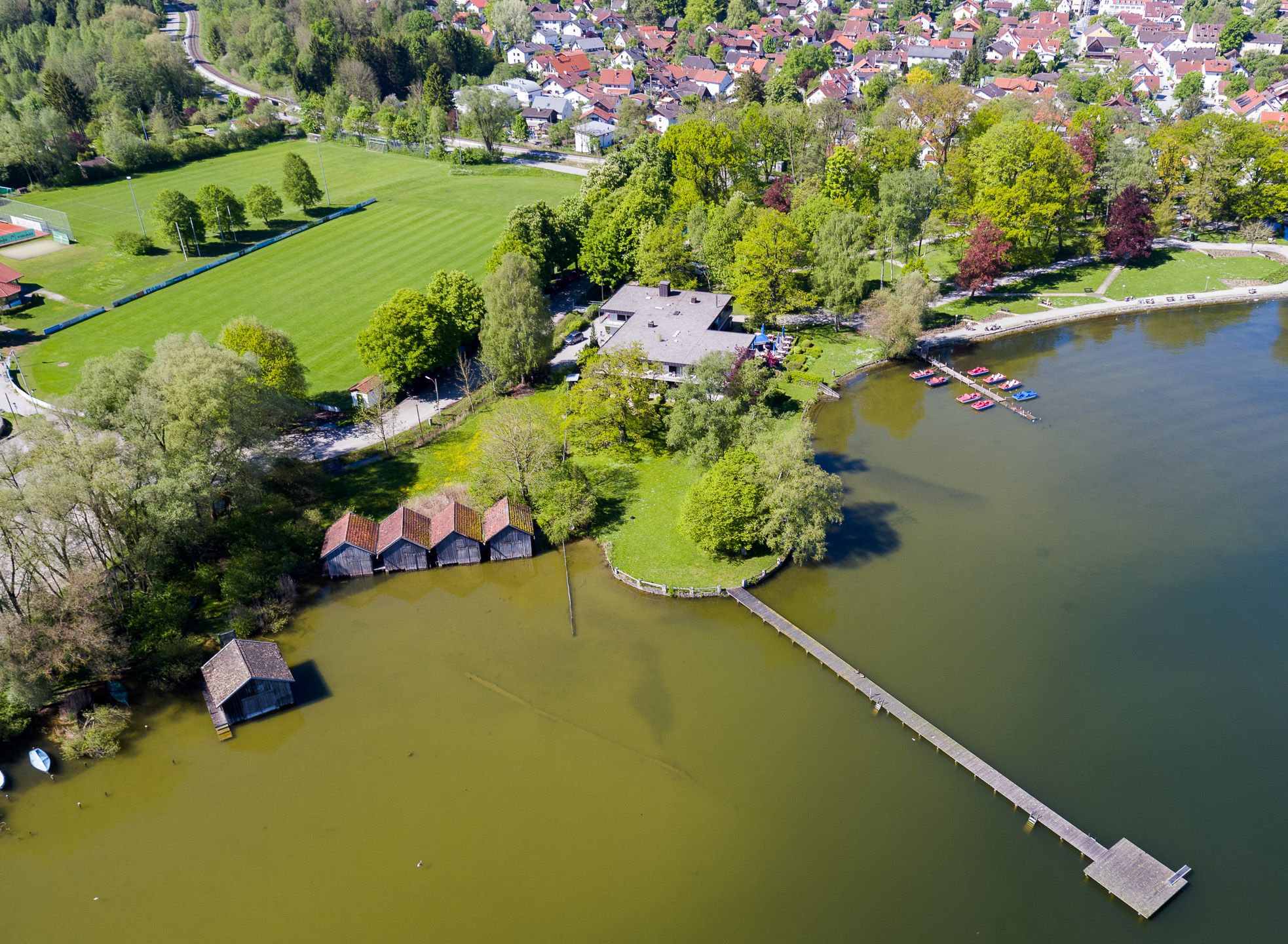 Der "Augsburger" ist vermutlich der älteste Segelclub am Ammersee, gegründet 1903. In dem Anwesen befindet sich das "Casino", das ursprünglich vom Verein genutzt, aber heute verpachtet wird.